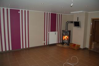 Sockelleiste angebracht und Ofen aufgestellt. Heute feiern wir Heizerkerb.....Prost.