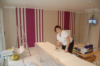 Tapeziert.... Nach einem ersten verwechsler, wir hatten Vliestapetenkleister verwendet obwohl wir Papiertapeten gekauft haben, ist uns das tapezieren gut von der Hand gegangen. Aufwand 10 bis 22 Uhr........ Tapezieren ist nicht unser Lieblingshobby.