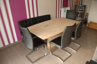 Bekommen haben wir den Tisch bei Segmüller und die Bank, Stühle und Barhocker bei Mömax.