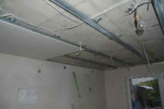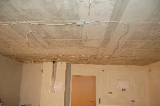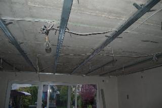 Holzdecke abgerissen, Elektro für Lampen verlegt.